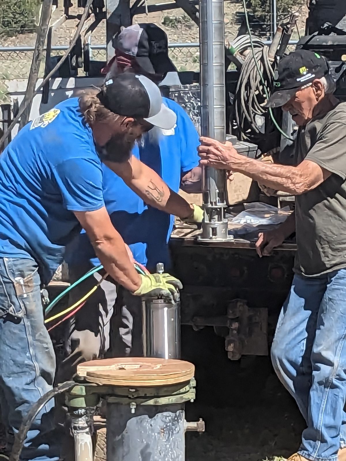 The team from Coyote Drilling, LLC replacing the pipes for the new well pump and motor.