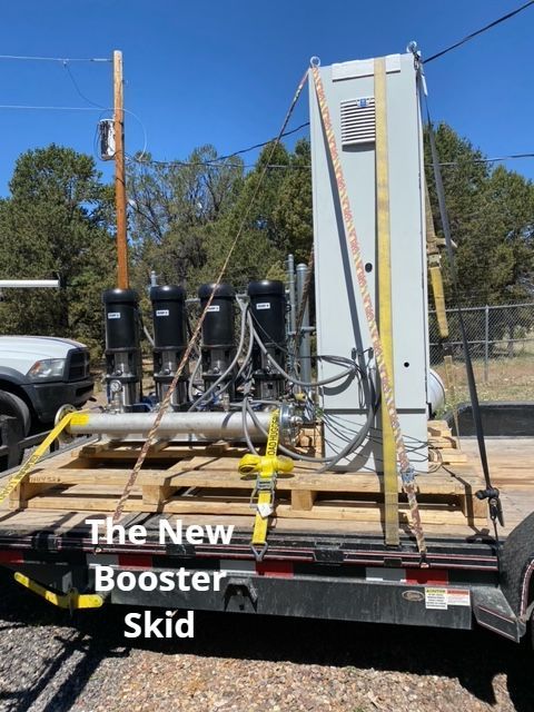 The new Booster Skid was successfully installed on July 25, 2023. We continue to make minor adjustments to settings within the system as it learns the community's usage patterns. Come back soon to see pictures of the new skid!
