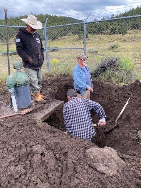 Repairs: Mid-November we had a watermain break at the entrance to QLE and at the same time a leak in the S-curve. We are so blessed to have received notification from residents at QLE. The mainline leak was a substantial leak. We immediately turned off the wells and assessed the direction of the leak's flow. Fred Black, circuit rider from NMRWA, arrived the next day, as did a large backhoe from Log, Stick, and Steel. Because the mainlines are so deep a very large area had to be dug. Once the pipes were exposed, our team, Steve Stoops, Eddie Jacques, Fred Black and George King were able to identify the source of the leak, and the repairs were completed. On to the S-Curve where additional digging and repairs took place. Unfortunately, we had to isolate the water leak by turning off water toward the entrance of the community. This left some customers without water for a few hours. Thankfully we were able to get their water back on before the end of the day. The S-Curve began leaking again in another location just before Christmas. Again, Steve Stoops and Eddie Jacques were able to get the are dug and place a temporary repair on site. Thankfully, those residents below the S-curve were once again without water for a few hours. When we go back to make permanent repairs, we will notify those residents prior to starting work.